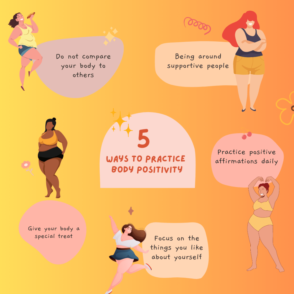Learning to embrace your body starts with kindness. Instead of focusing on what you think is “wrong,” shift the conversation to what your body does for you every day. Your legs carry you through adventures, your hands create, your skin protects you. Every part of you tells a story of strength and resilience.